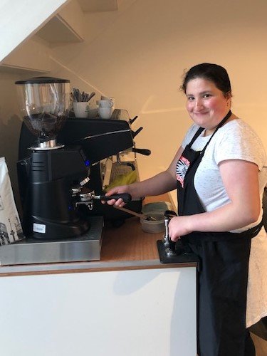 'Onze' jongeren zijn opgeleid tot junior Barista en maken alle gewenste koffie: van een (h)eerlijke espresso tot een latte macchiato. Naast onze heerlijke zelfgemaakte dadeltaart, serveren zij tevens een eenvoudige lunch. Het is ook mogelijk om koffie en lekkers mee te nemen voor onderweg.